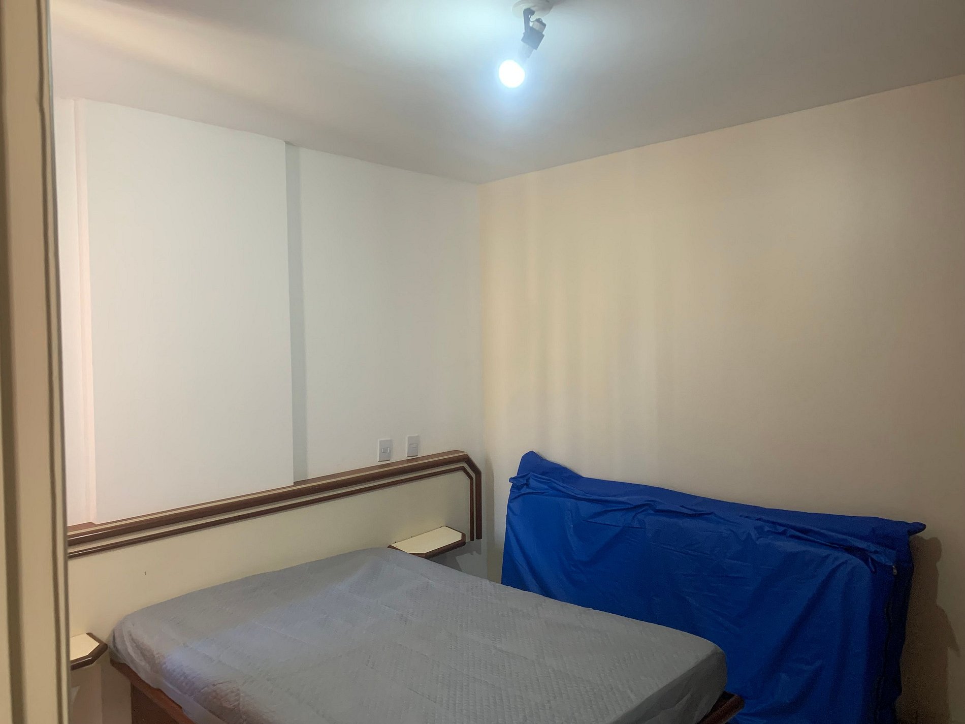 QUARTO com: 01 cama de casal, 01 colchão de solteiro, ar condicionado e guarda-roupa.