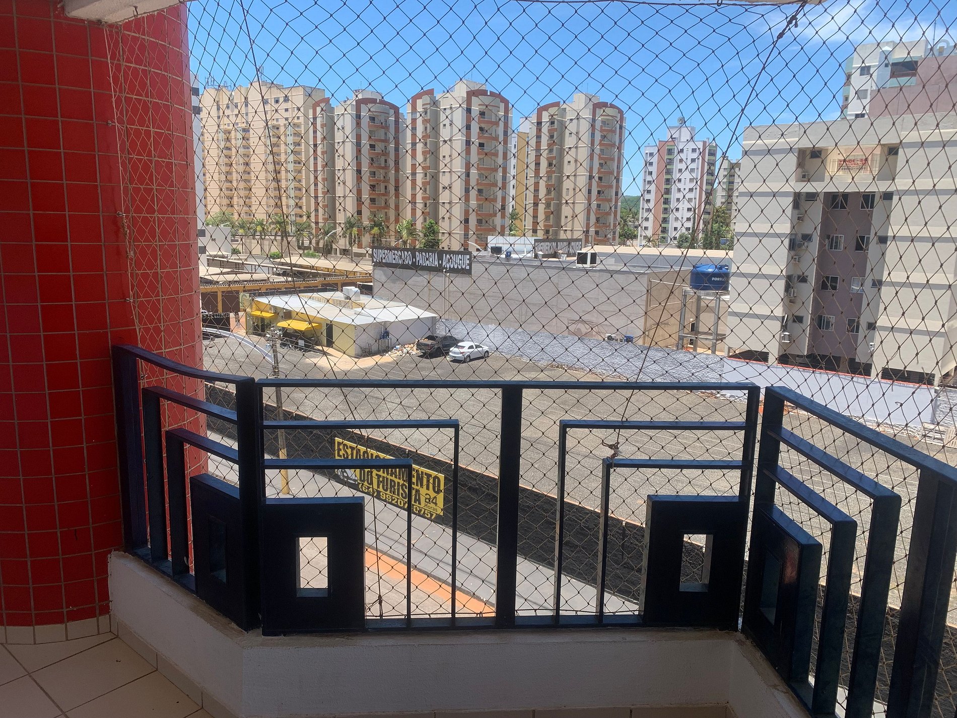 SALA com: sofá cama casal, ventilador, TV, sacada com tela de proteção,