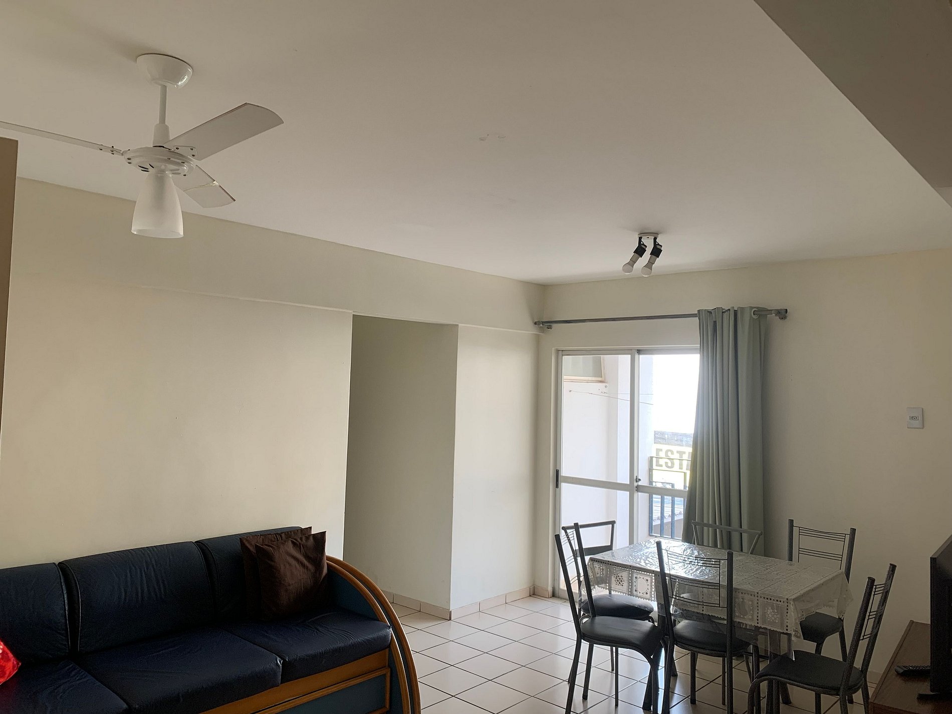 SALA com: sofá cama, TV, sacada com tela de proteção,