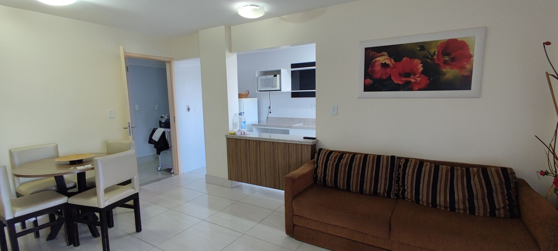 *Sala com sofá cama de casal, TV, varanda, cozinha completa com geladeira, microondas, fogão e utensílios de cozinha. *Acomoda até 07 pessoas independente da idade.